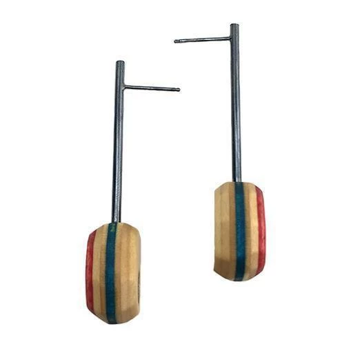 - Silhouette: faceted, multicolored pendants on oxidized silver bars on posts